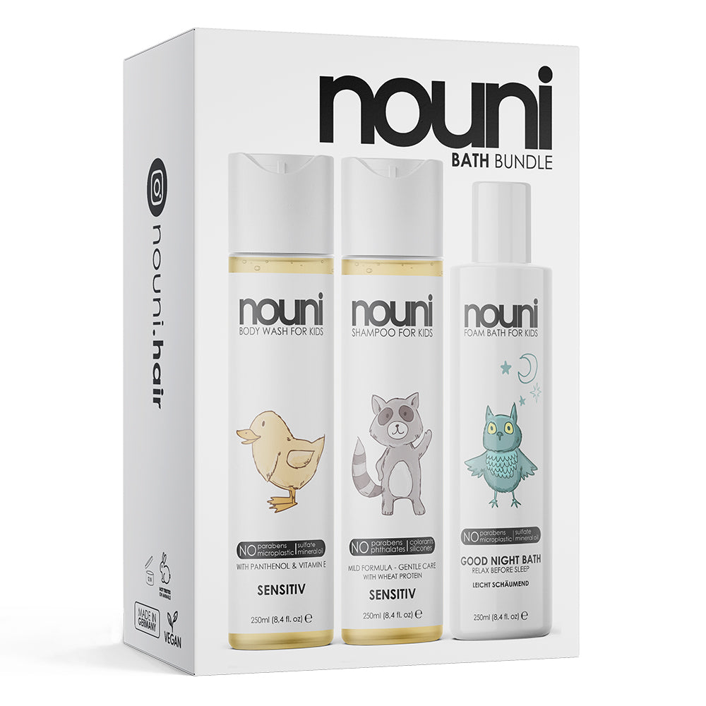 Mit dem nouni Bath Bundle erhalten Sie ein perfekt abgestimmtes Pflegepaket für Ihr Kind. Shampoo, Badeschaum und Waschgel bieten eine sanfte Reinigung und Pflege von Kopf bis Fuß. Die hochwertigen Inhaltsstoffe, die frei von schädlichen Zusätzen sind, gewährleisten ein gesundes Haut- und Haargefühl. Made in Germany bedeutet geprüfte Qualität und Sicherheit, der Sie vertrauen können. Ob beim Baden, Haarewaschen oder täglichen Duschen – das Bath Bundle macht jede Pflegeanwendung zu einem positiven Erlebnis für die Kleinen und sorgt für strahlend schöne Haut und Haare.